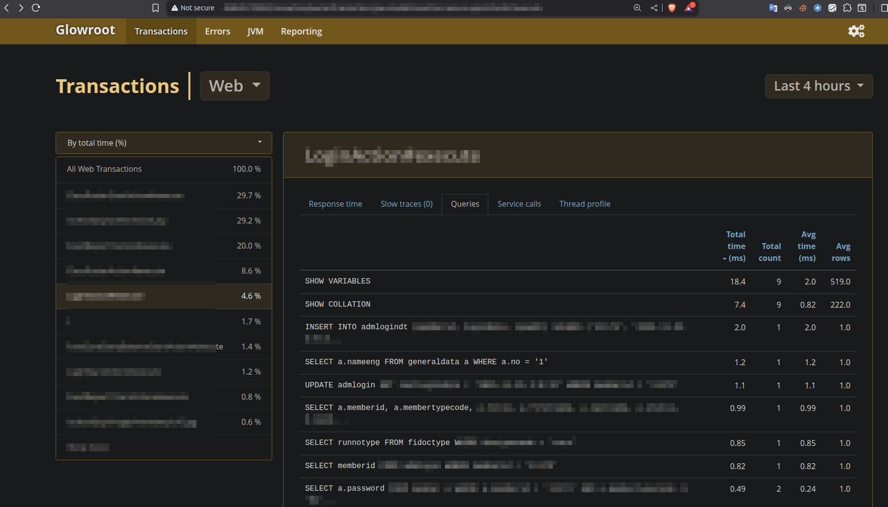This dork is particularly potent. It looks for “Glowroot” in the page title, combined with the presence of “transaction” in the URL. Why “transaction”? Because Glowroot’s primary function is monitoring transactions, and this often appears in its default URL structures, leading you directly to the heart of its operational data.
